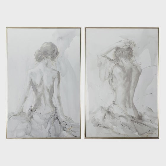 Tia 33 x 49 Hanging Wall Art Portrait Set of 2, Gray Feminine Figure Sketch - BM312743