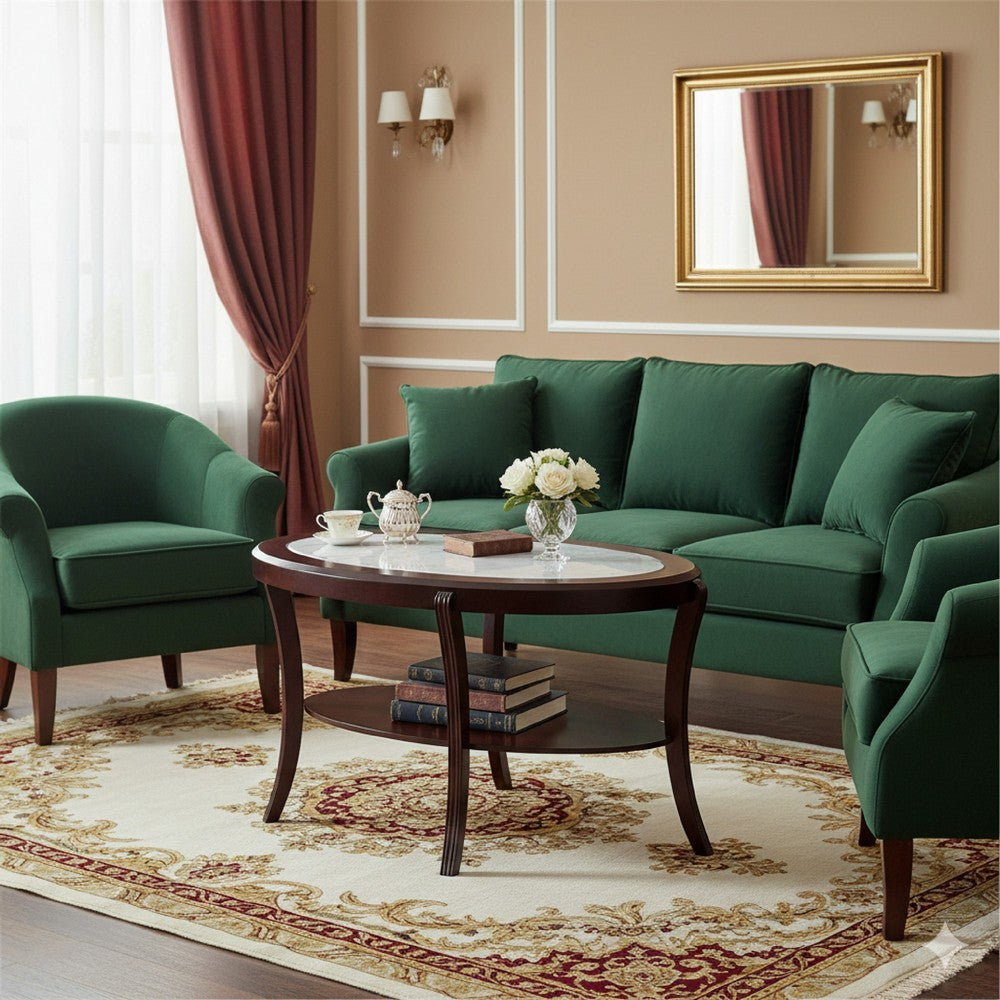 Our Lyn console table offers a perfect blend of elegance and functionality for your living space. It features an oval clear glass top, a lower shelf, and a sleek surface to display decorations and accessories. This table combines durability with a contemporary design, constructed with solid wood and MDF in a brown finish. Check out our Lyn collection for matching set options.