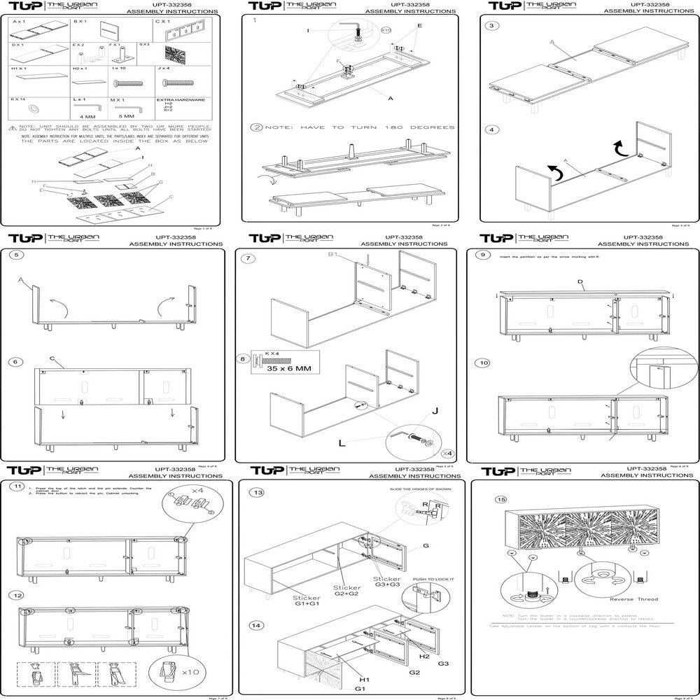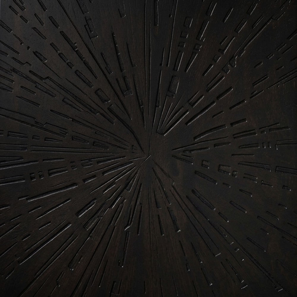 - Features three doors with striking sunburst pattern carved across the fronts for concealed and organized storage