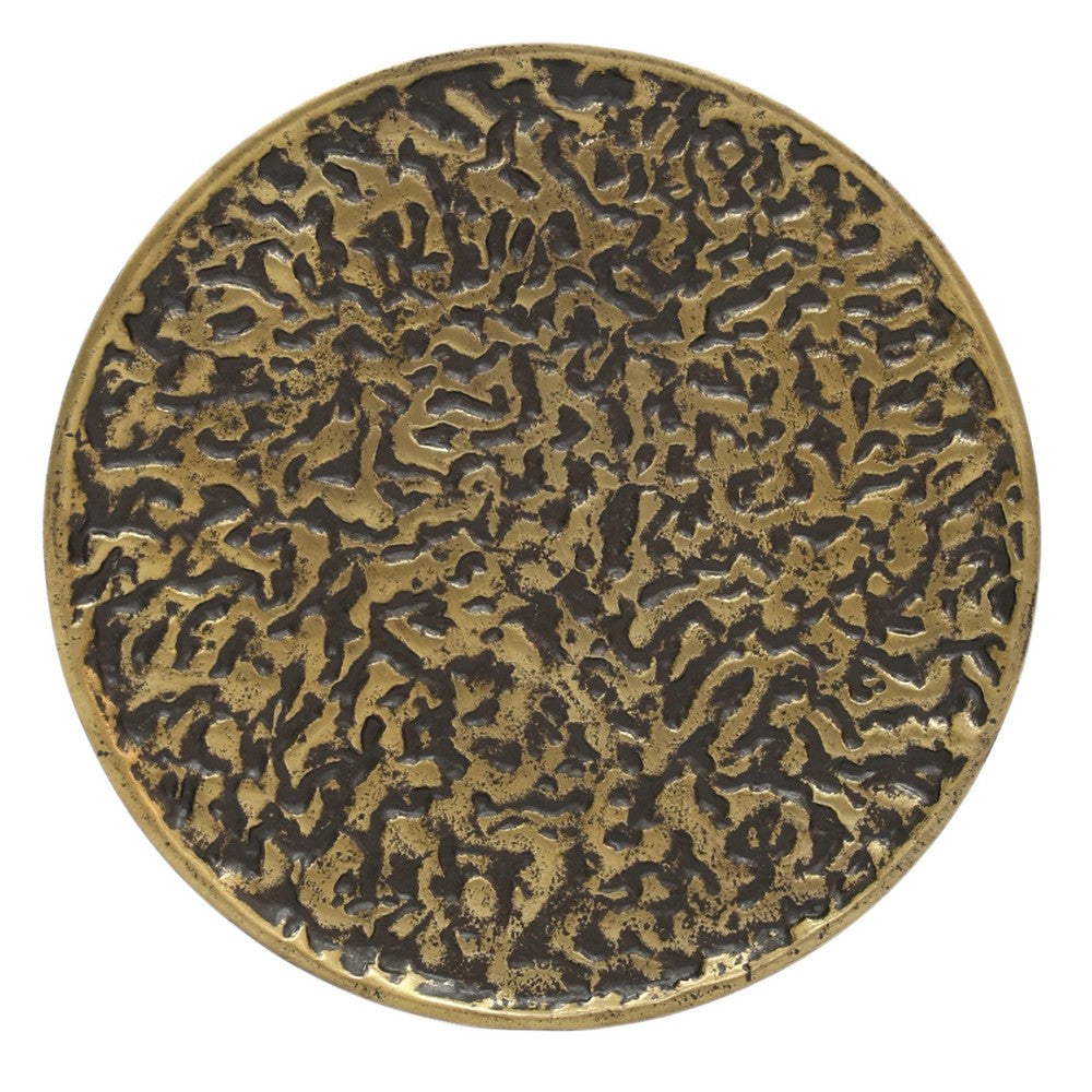 Striking a perfect balance between sculptural elegance and artisan texture, the Arvyn handcrafted drink table is a distinctive design statement for any contemporary or transitional living space. Expertly handcrafted from aluminum cast, this table features a rich antique brass finish that brings warmth and metallic depth to your interior. Its embossed texture lends a captivating tactile and visual richness, offering a natural variance in a pattern that ensures no two tables are exactly alike and enhancing its handmade, artisanal character. The tapered, cone-shaped base adds architectural interest while enhancing the piece’s overall lightness and airiness. Explore our Arvyn collection to see more.
