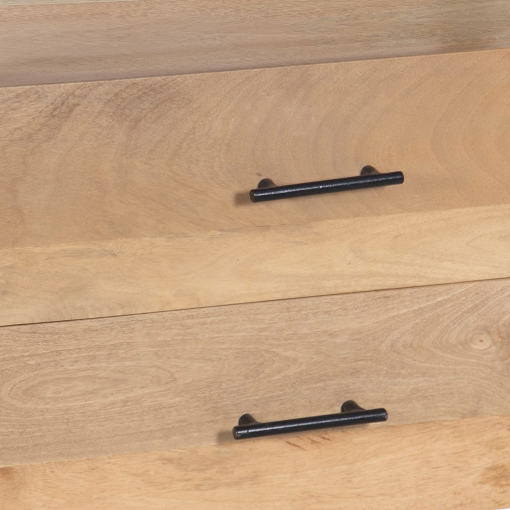 Give your bedroom the perfect bedside partner with this distinctive transitional style bedside nightstand. It is made from a mango wood frame in a natural oak white finish that showcases its sleek lines and boasts an elegant silhouette for a striking appearance amid any interior decor setting. The two soft-close drawers offer plenty of storage space for your handy bedtime essentials. All in all, this charming piece stands on top of round legs and boasts black hardware, with tabletop space for a small lamp and a framed family photo. Its classical design and simple, no-nonsense construction give this nightstand a beautiful, elegant look. Check out our Geti collection for more options.