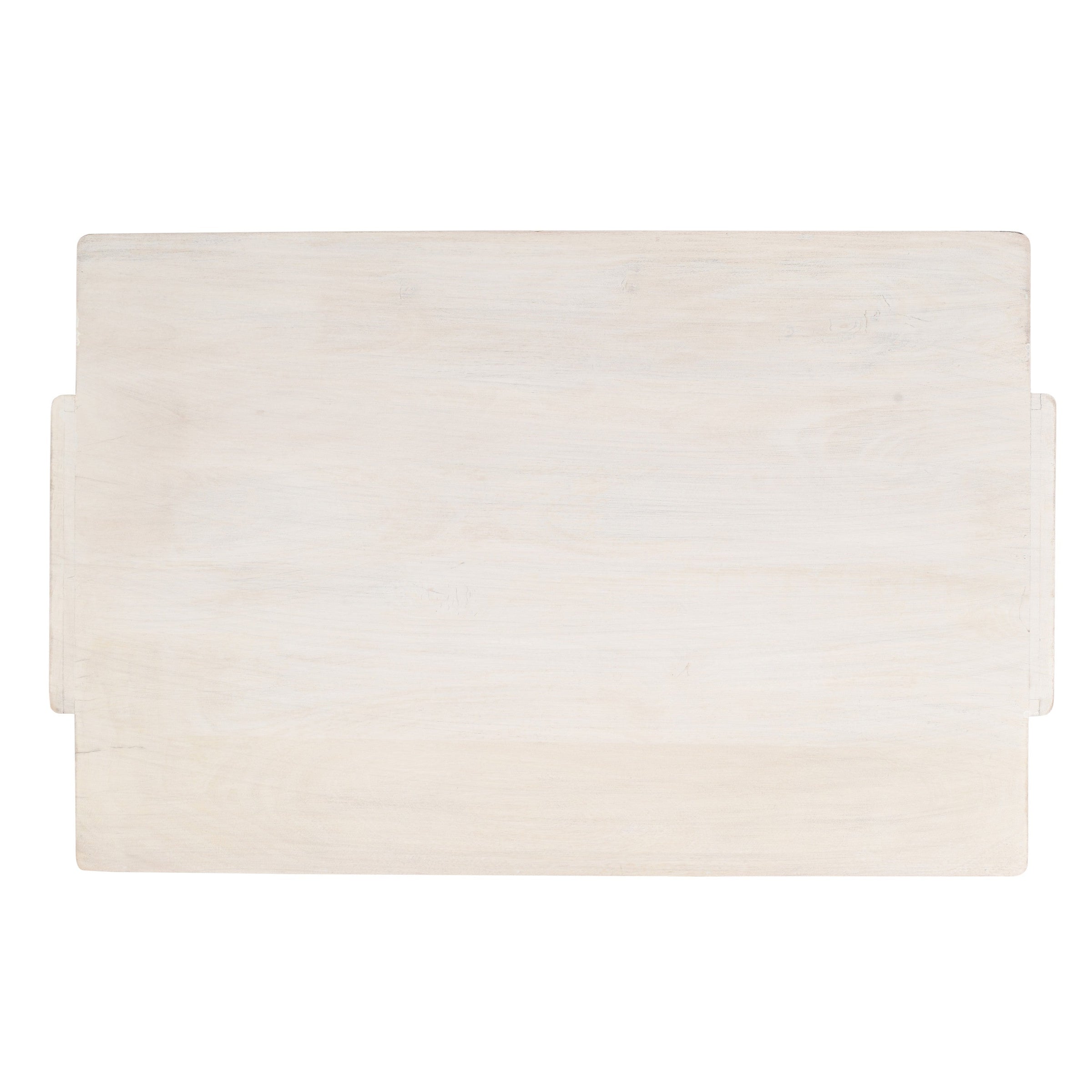 - Soft biscotti white finish with light distressing enhances visual warmth and wood grain