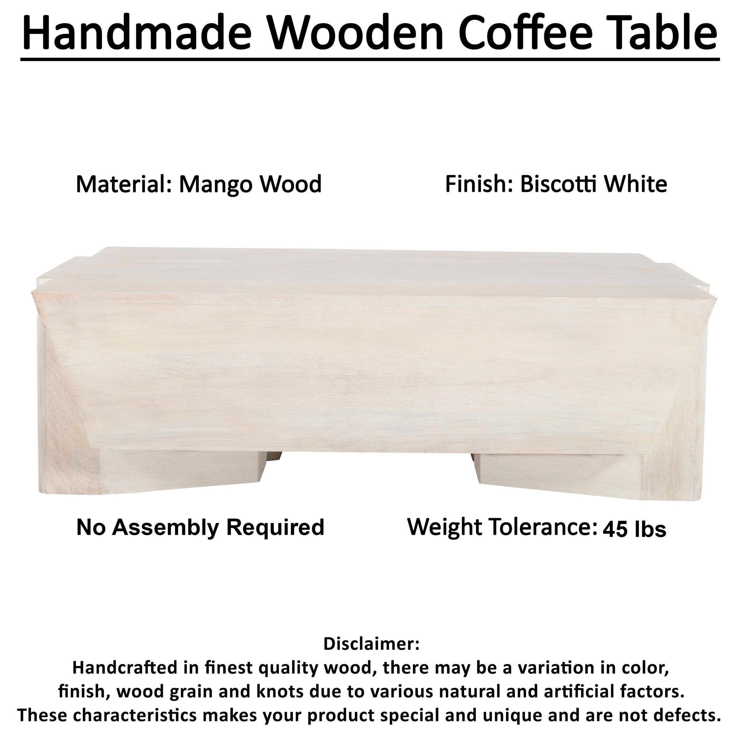 - Variant: White / Mango Wood / 45 L x 28 W x 15 H Inches