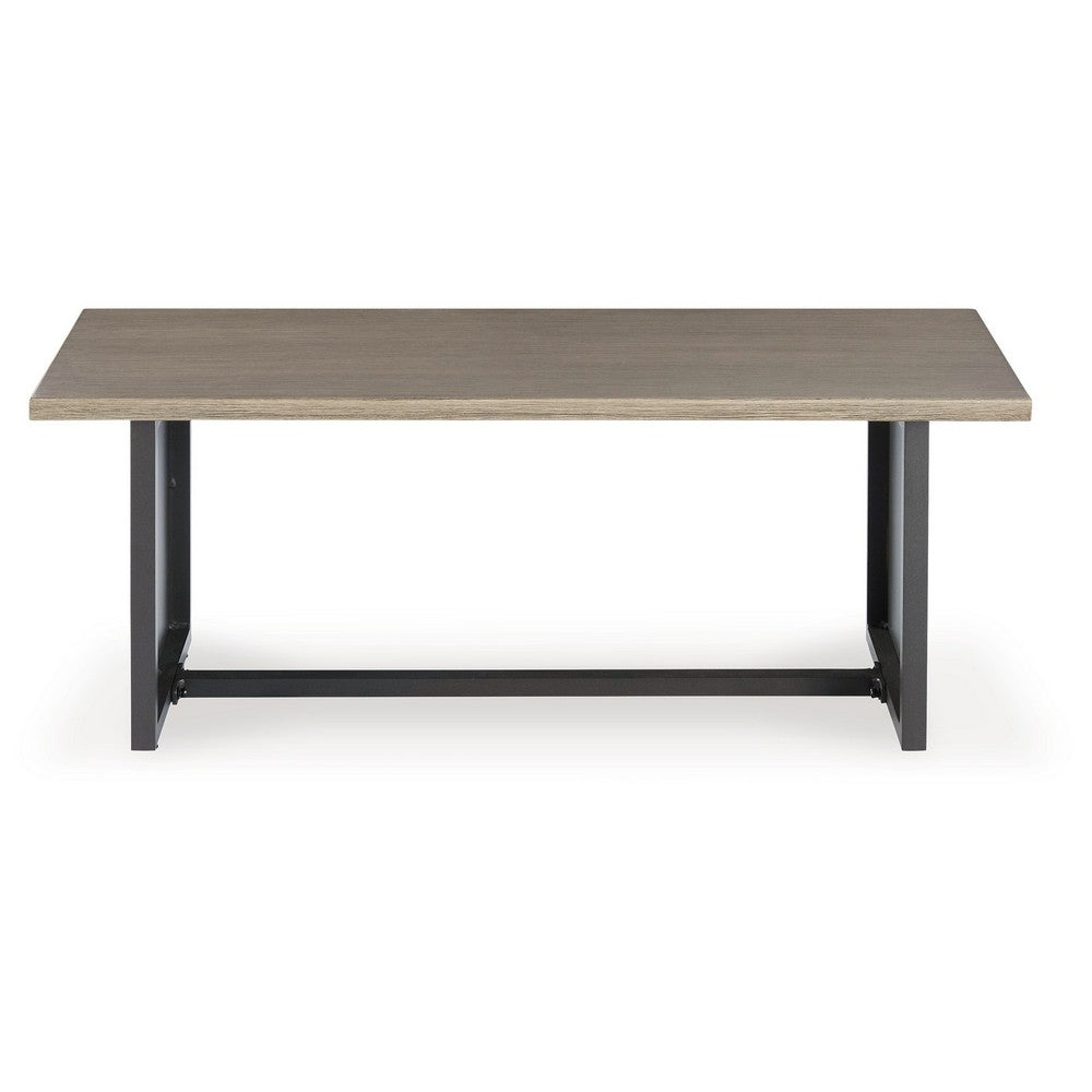 - Spacious rectangular top made of warm natural brown finished faux wood look on aluminum
