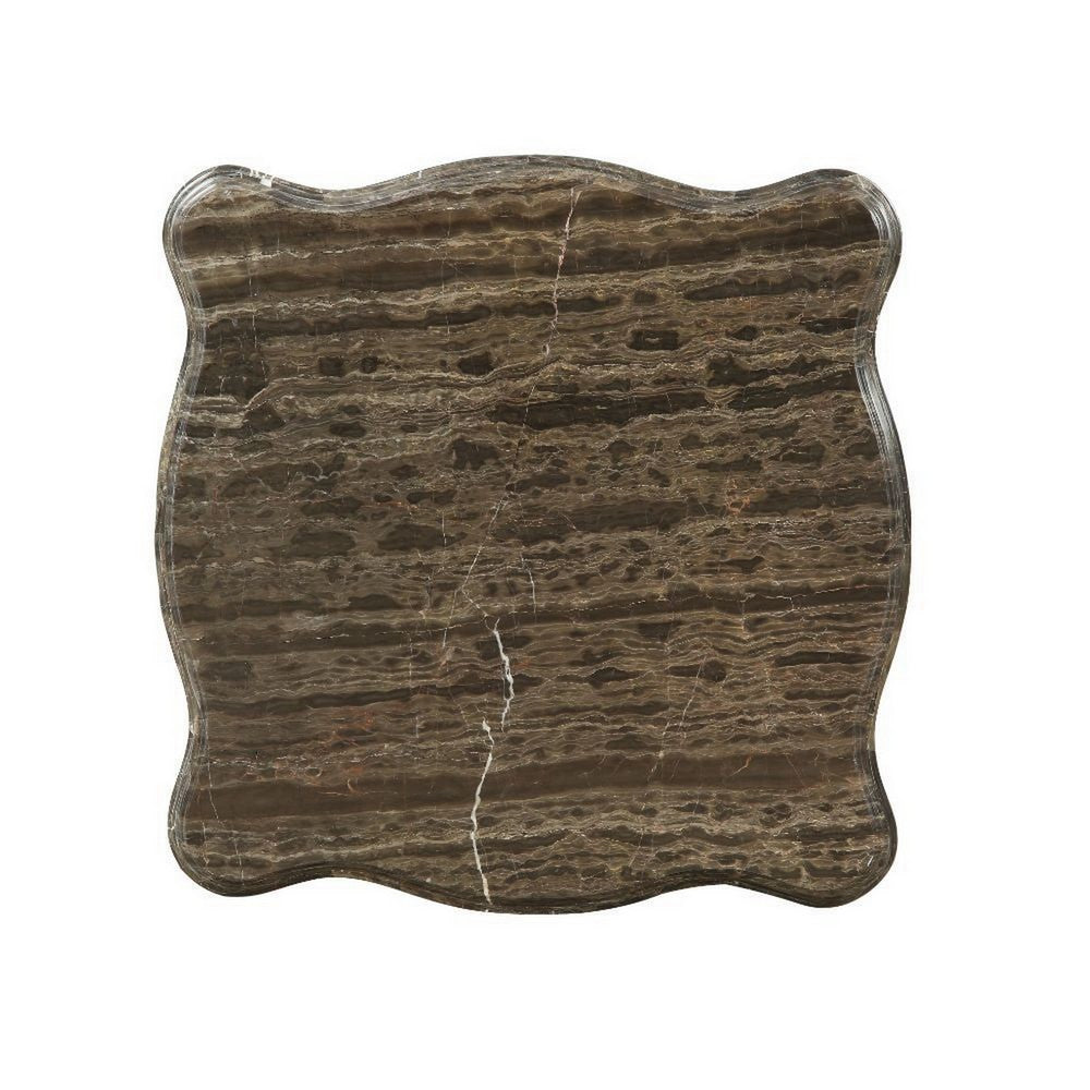 30 Inch Classic Square Marble Top End Table, Cabriole Legs, Gray, Brown - BM280273