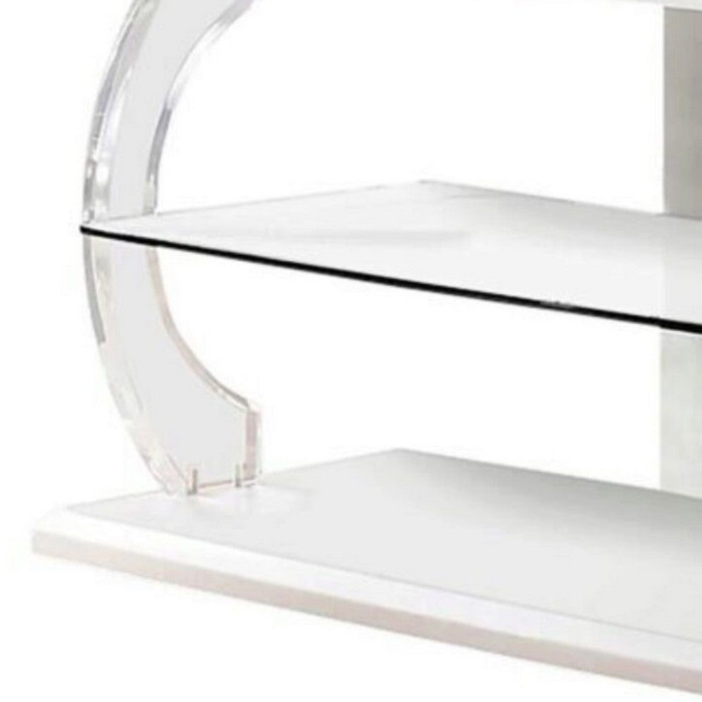 60" Wooden TV Stand With Spacious Glass Shelf, White And Clear - FOA-CM5901WH-TV-60