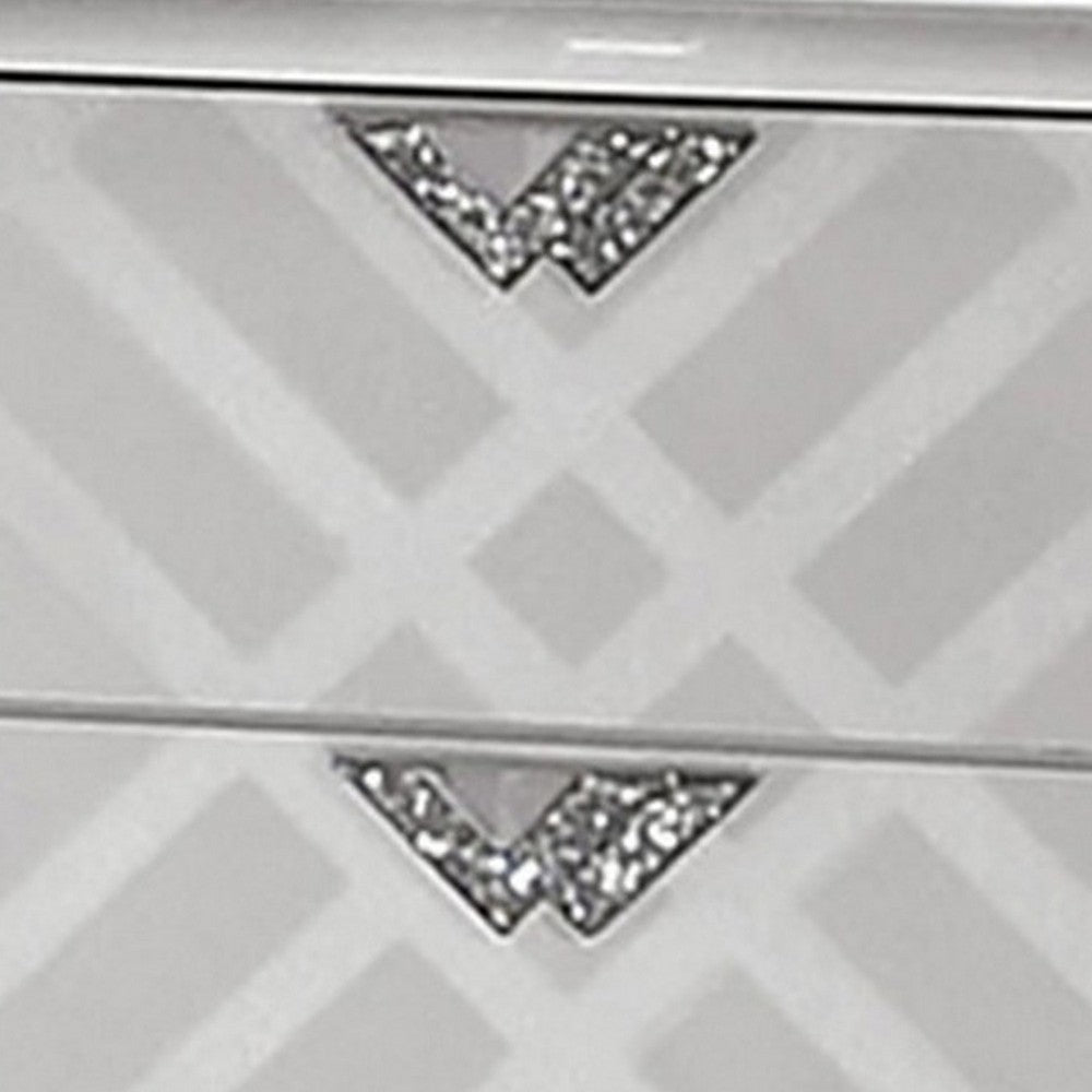 Exemplify art deco beauty by your bedside by bringing home this gorgeous and luxuriously crafted two drawer nightstand. Supported by strong acrylic feet with jewel like carvings, this piece includes embossed patterns in a lovely crisp white coloration that provides a visually striking touch to any master or guest bedroom. Check out our Beli collection for more options.