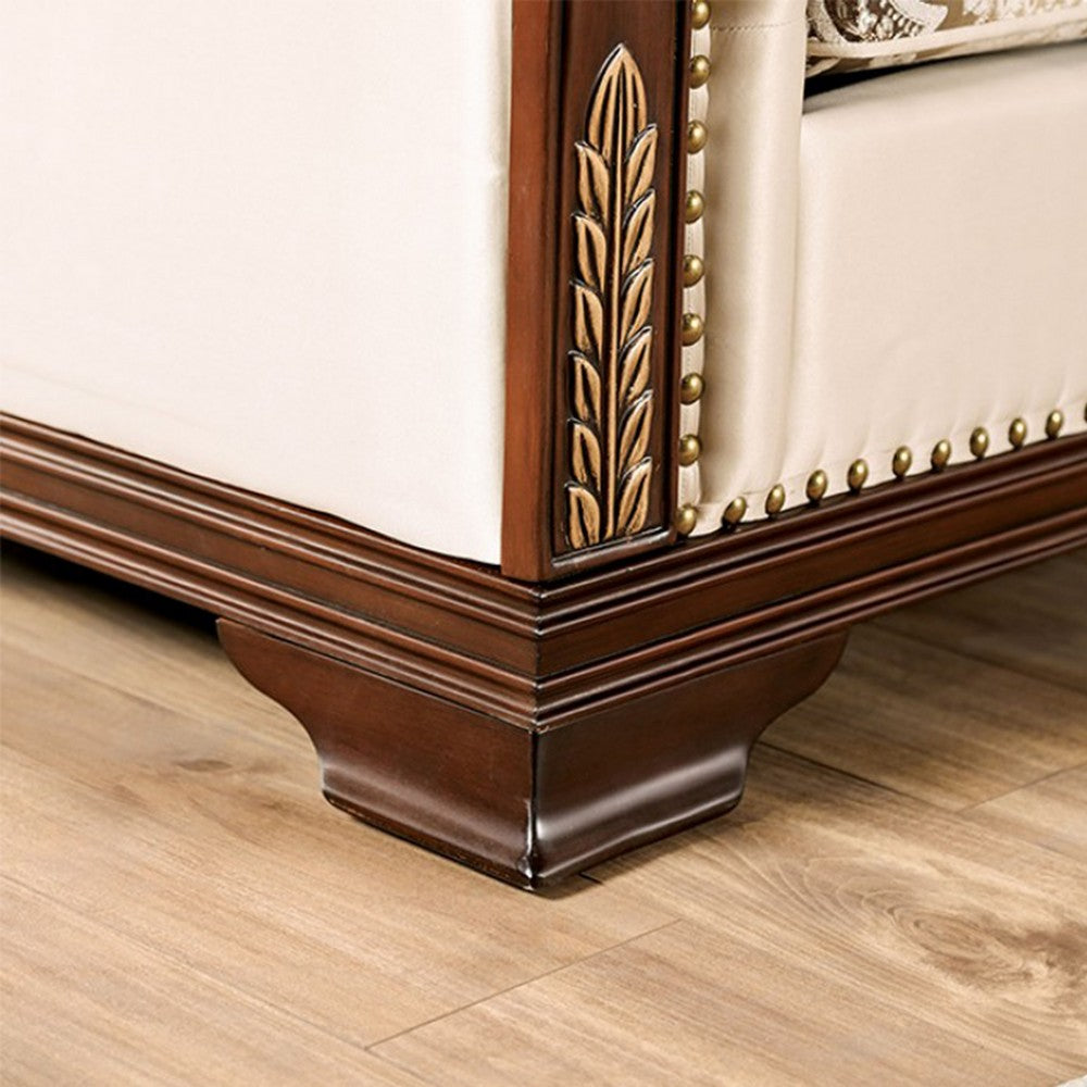 Catie Accent Chair, Beige Rolled Arms, Nailhead, Cherry Brown Solid Wood - BM319521