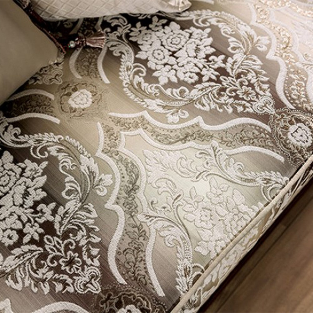- Variant: 38.5 L x 47.5 W x 26 H Inches / Cherry Brown, Beige / Solid Wood, Crystals, Fabric