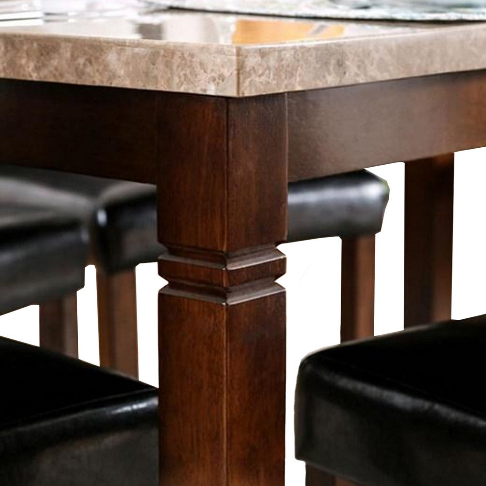 Ery 7pc Dining Table and Chair Set, Genuine Marble, Brown Faux Leather - BM332509