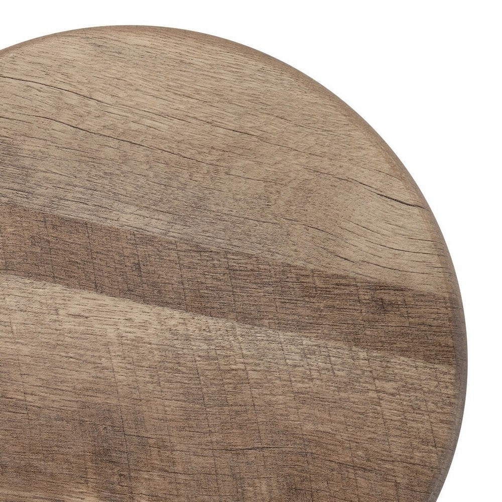 - Spacious round tabletops in a natural brown wood finish