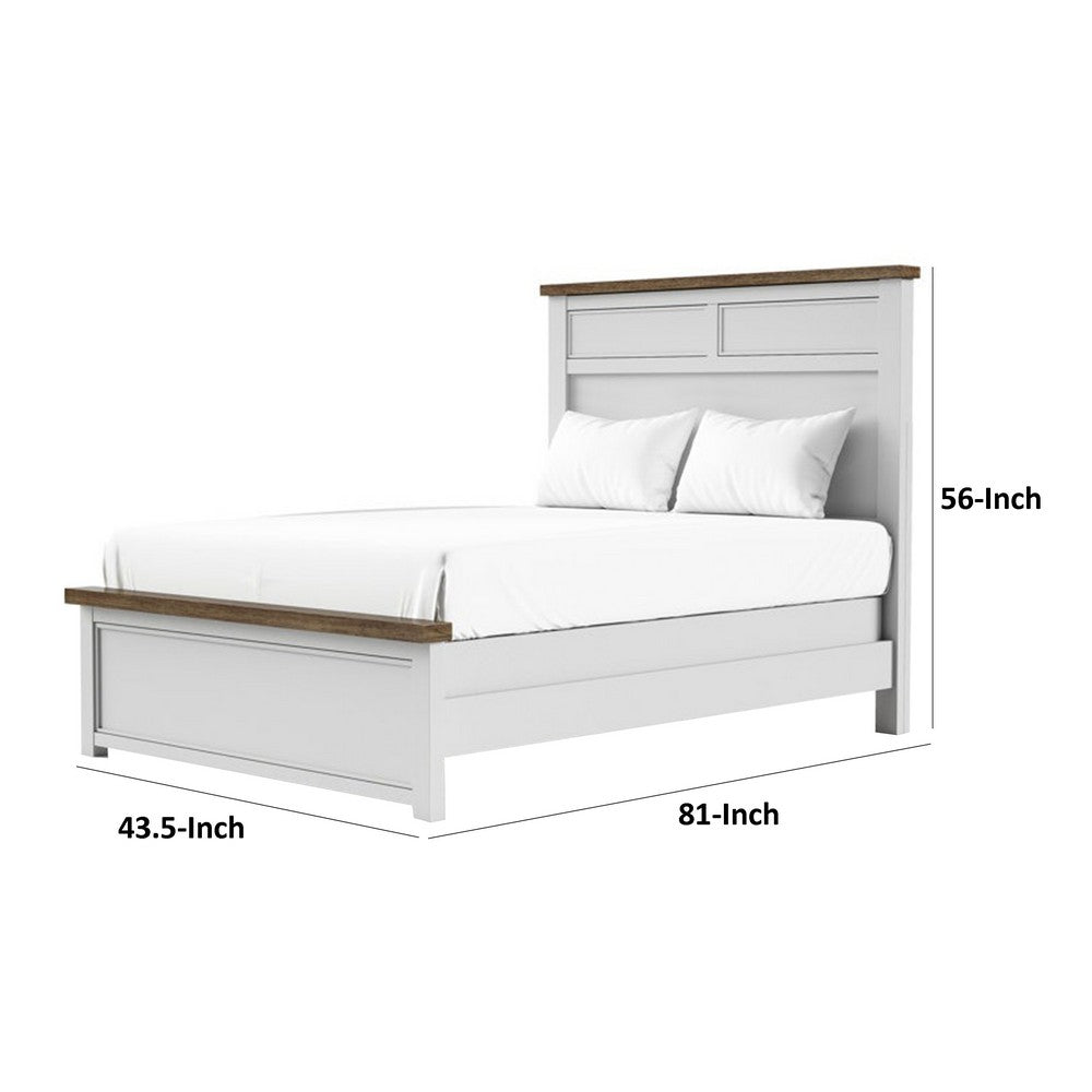 Tela Twin Size Bed w Recessed Panel Headboard, Dark Brown Trim, White - BM342431