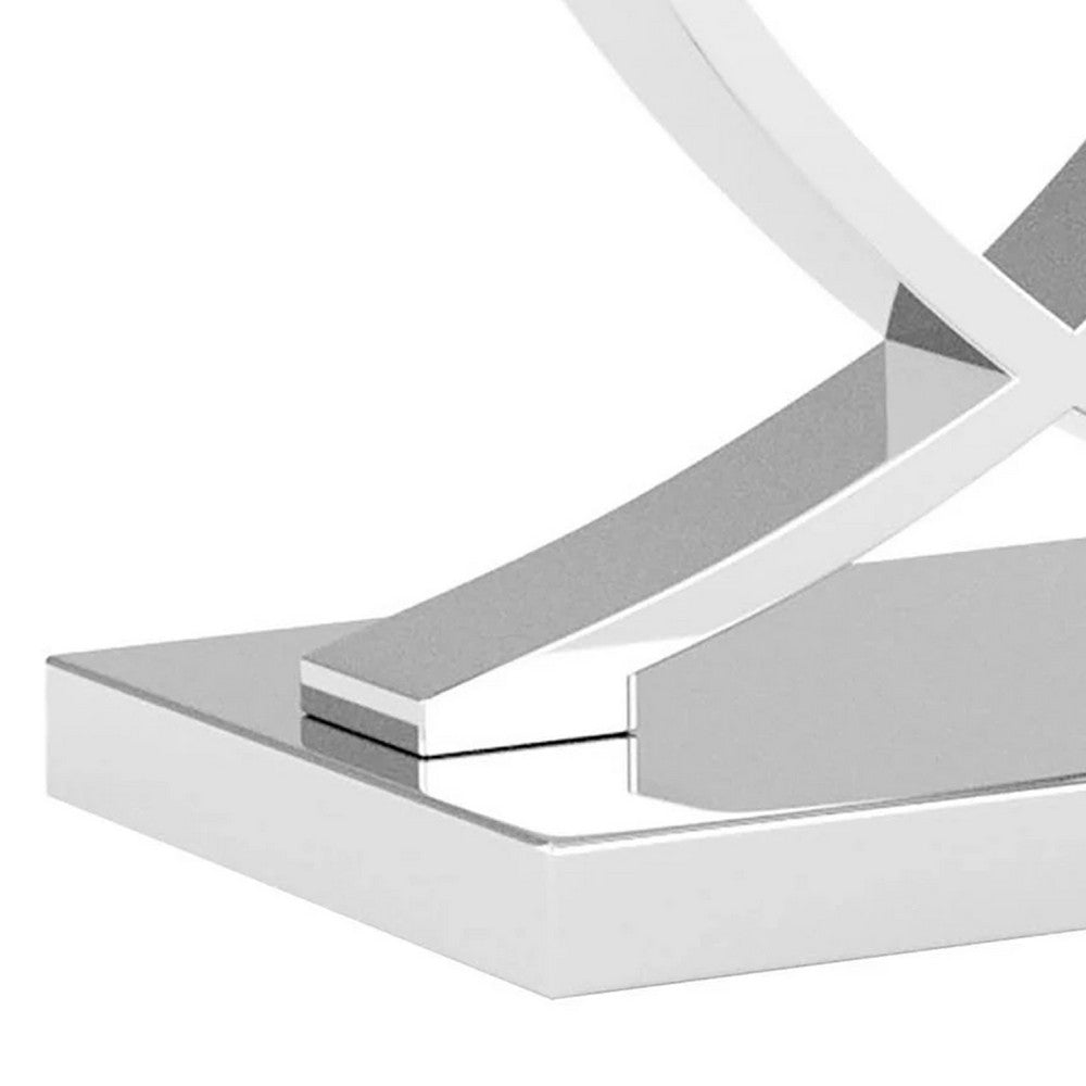 - Curved chrome pedestal base creates a sculptural, interlocking silhouette