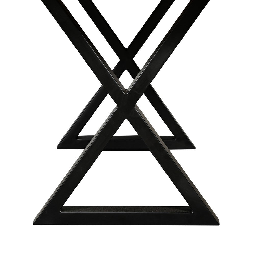 - X shaped iron legs provide balanced stable, support, and a dynamic look