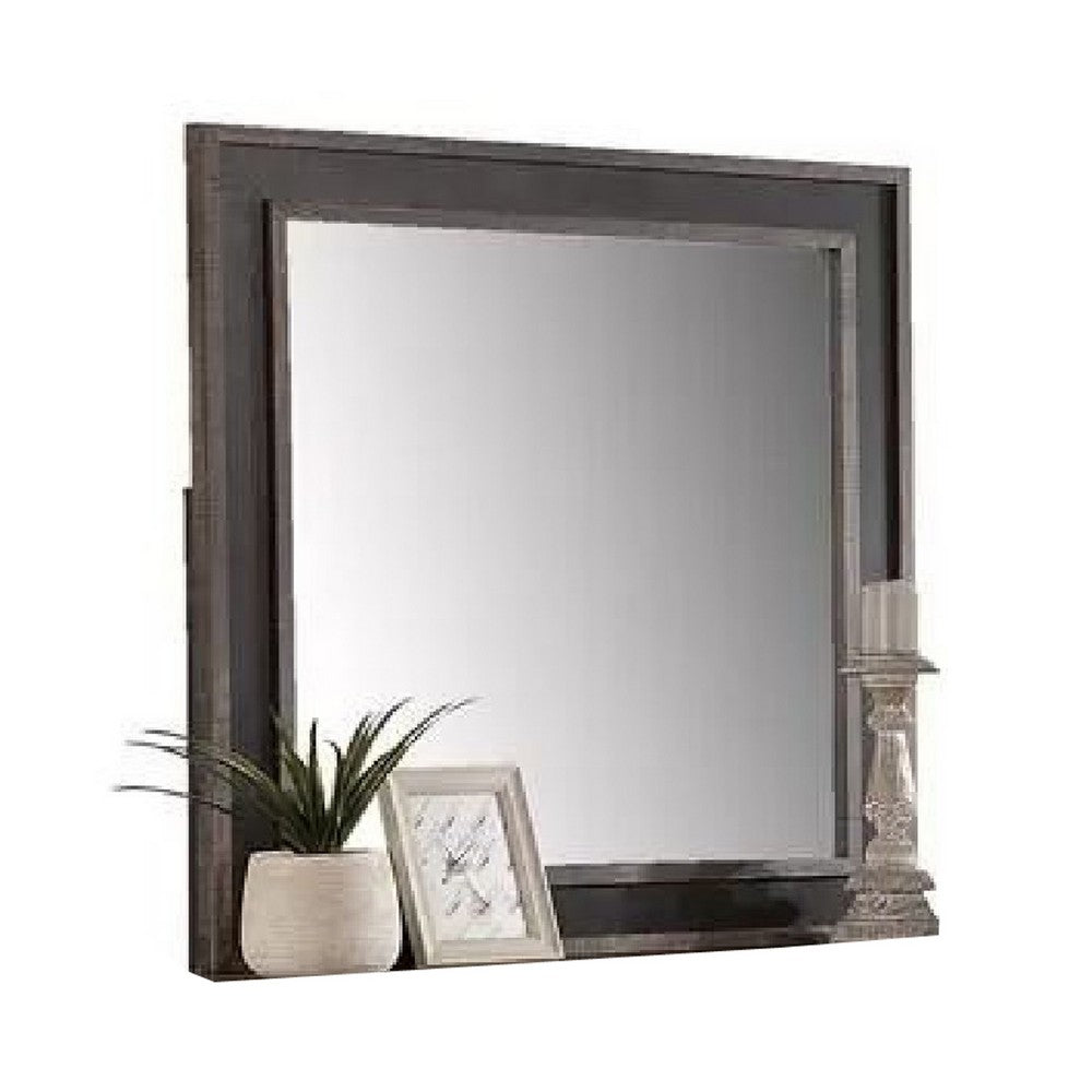 Dresser Mirror, Rustic Brown and Charcoal Gray Wood Frame, 36 Inch - BM341034