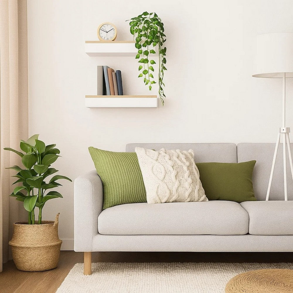 Add a sleek, modern vibe to your home with this set of two floating shelves. Perfect for showcasing books, decor, or photos, they bring both elegance and practicality to any room. Made from sturdy MDF and finished in oak brown and white, these shelves brighten up your space while holding up to 11 lbs each with ease. Explore our Hannah collection for additional options.