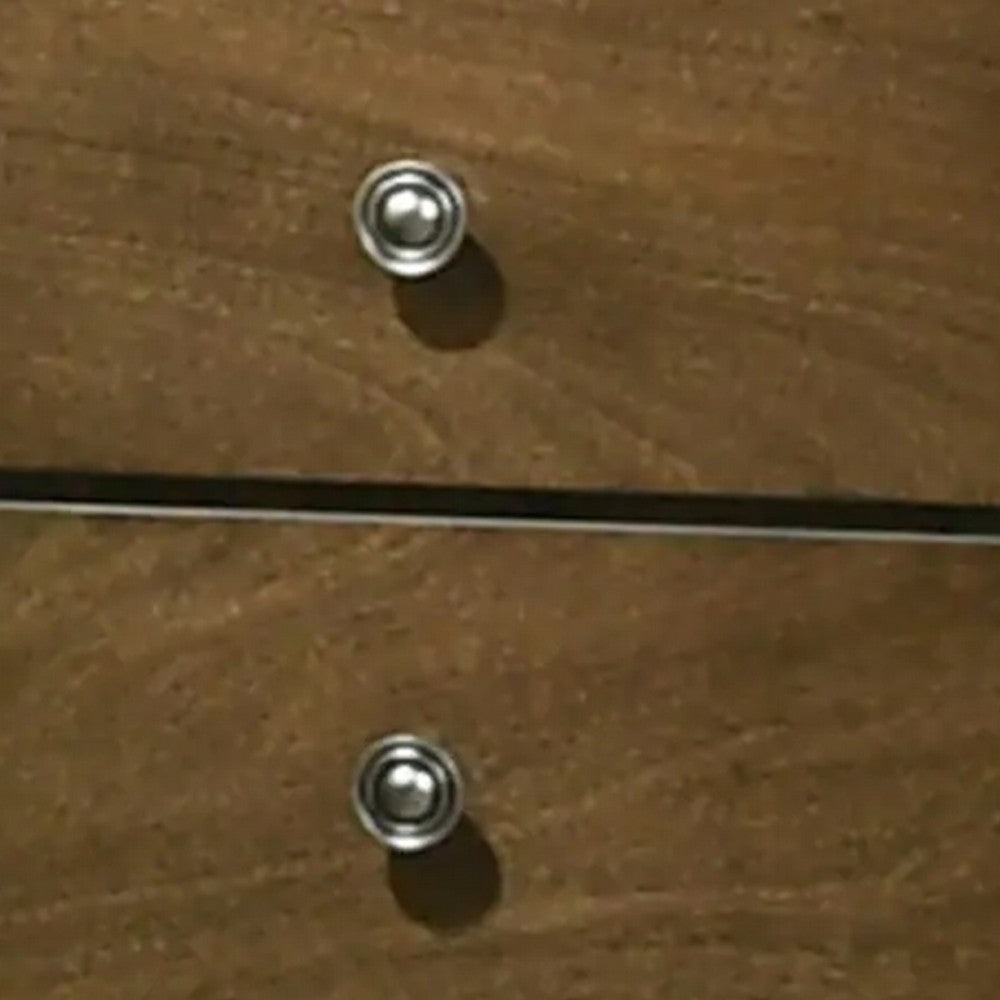 Introduce warm, timeless elegance to your bedroom with this transitional nightstand. Crafted from solid rubberwood, okume veneer, and engineered wood, it offers two spacious drawers for convenient storage. A rich walnut brown finish, bronze metal knobs, and classic detailing complete its enduring appeal. Explore our Rouk collection for more options.