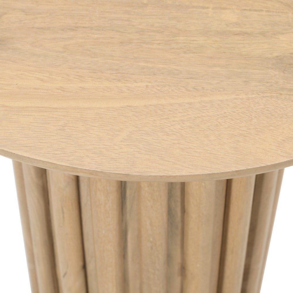Sejo Side End Table, 20 Inch Round Top with Fluted Base in Natural Brown Mango Wood - UPT-301719