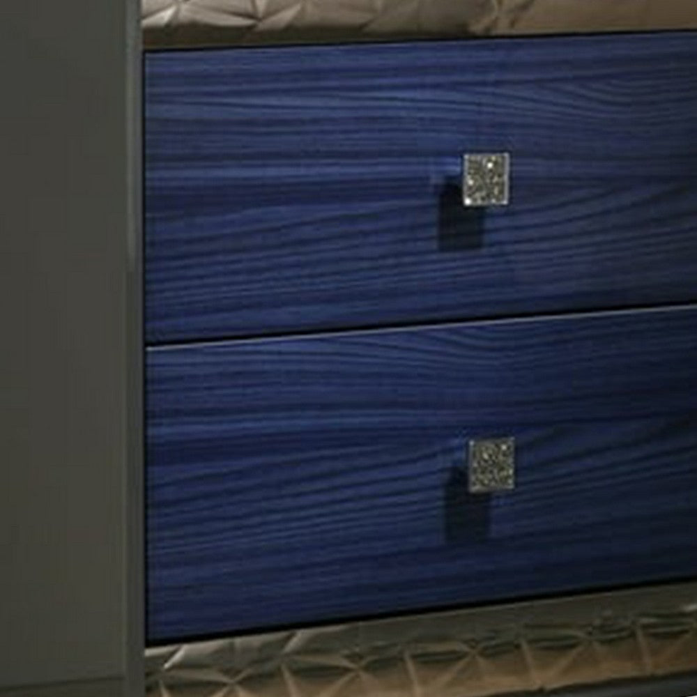 Zara Nightstand w 2 Drawers, Crystal Knobs, Ash Gray, Indigo Blue Wood - BM339419