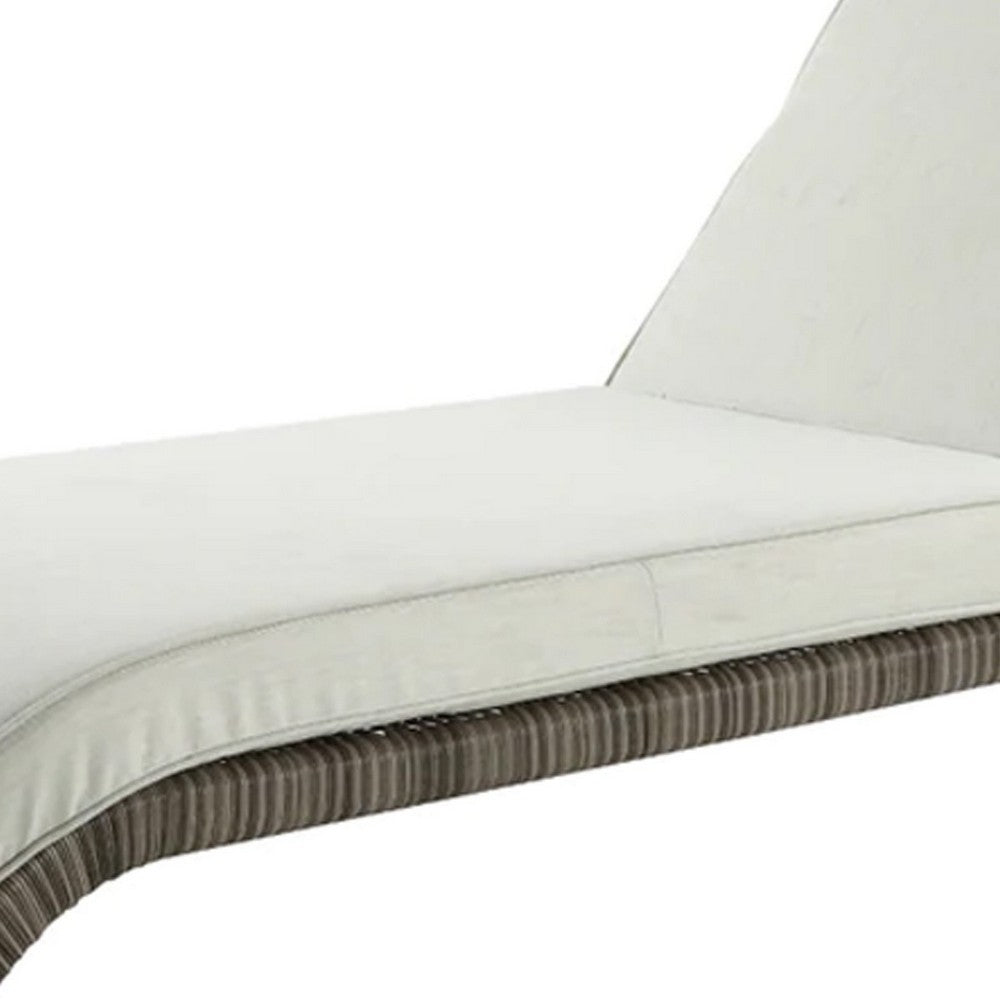80 Inch Outdoor Patio Sun Lounge, All Weather Resin Wicker, Brown, White - BM276211