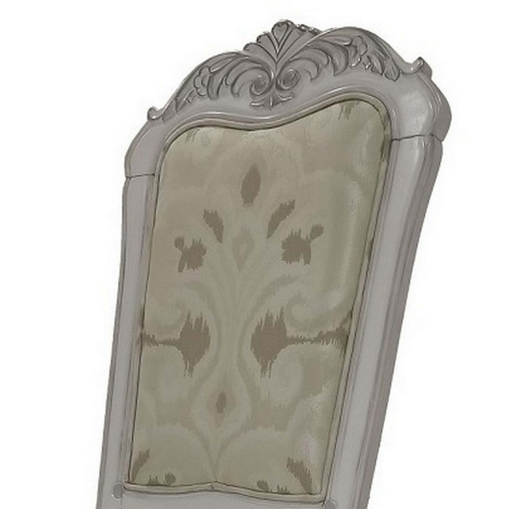 This pair of classic side chairs combines durability and style for a stunning addition to any modern or traditional home. Crafted with sturdy wood frames in natural bone white finish, each chair features a fabric upholstered back and a padded faux leather seat for an aura that radiates both comfort and class in equal measure. Check out our Aurora collection for more like this.