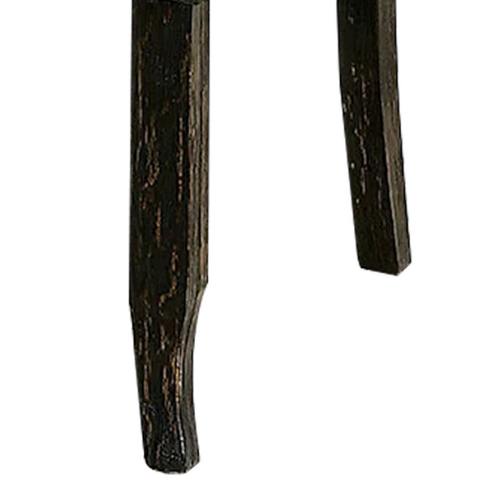 Radiating industrial and traditional charm, this beautiful black wingback dining chair, available in a set of two, boasts solid wood and veneer construction, soft fabric upholstery, and a visually complimentary jet black wood base. Distressed wood grain details exude a rugged sense of homespun charm. Check out our Bega collection for matching items.