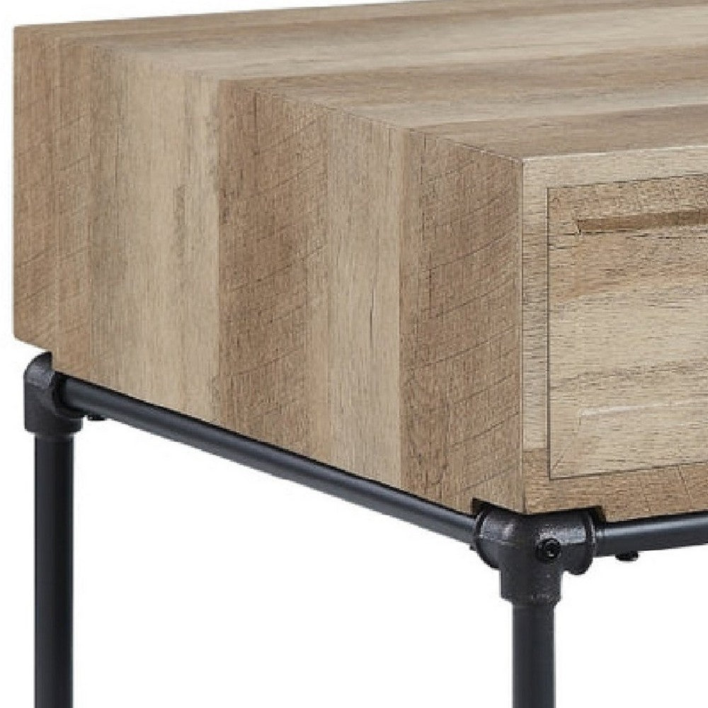 Ley 22 Inch End Table, 1 Drawer, Industrial Design, Slatted Shelf, Oak - BM276288