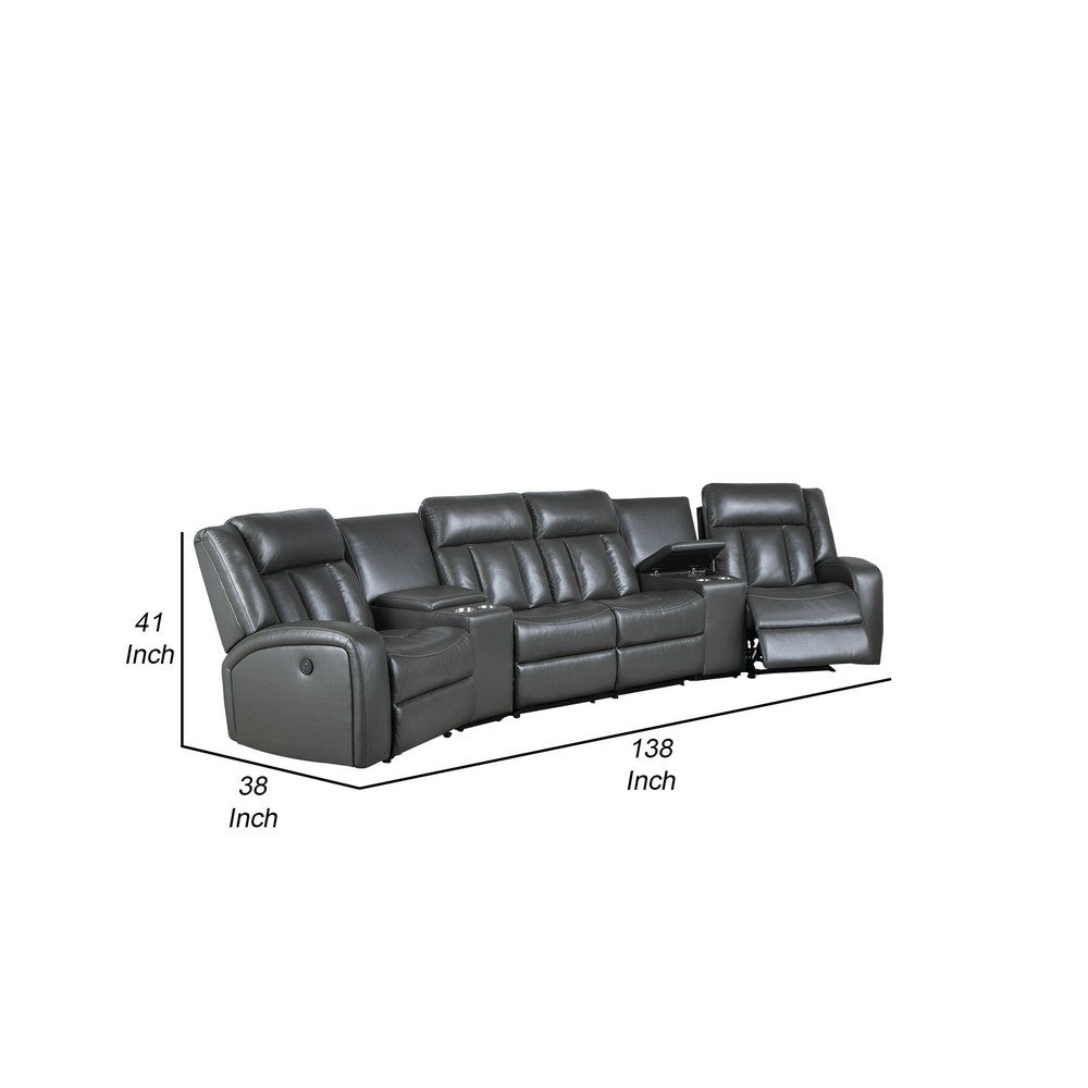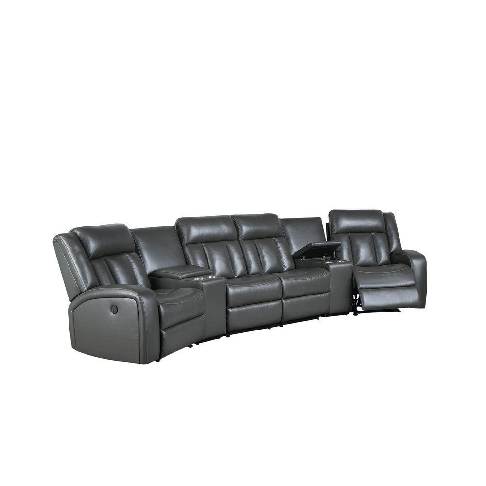 Max 5 Piece Modern Manual Recliner Sectional Set, Gray Vegan Faux Leather - BM284363