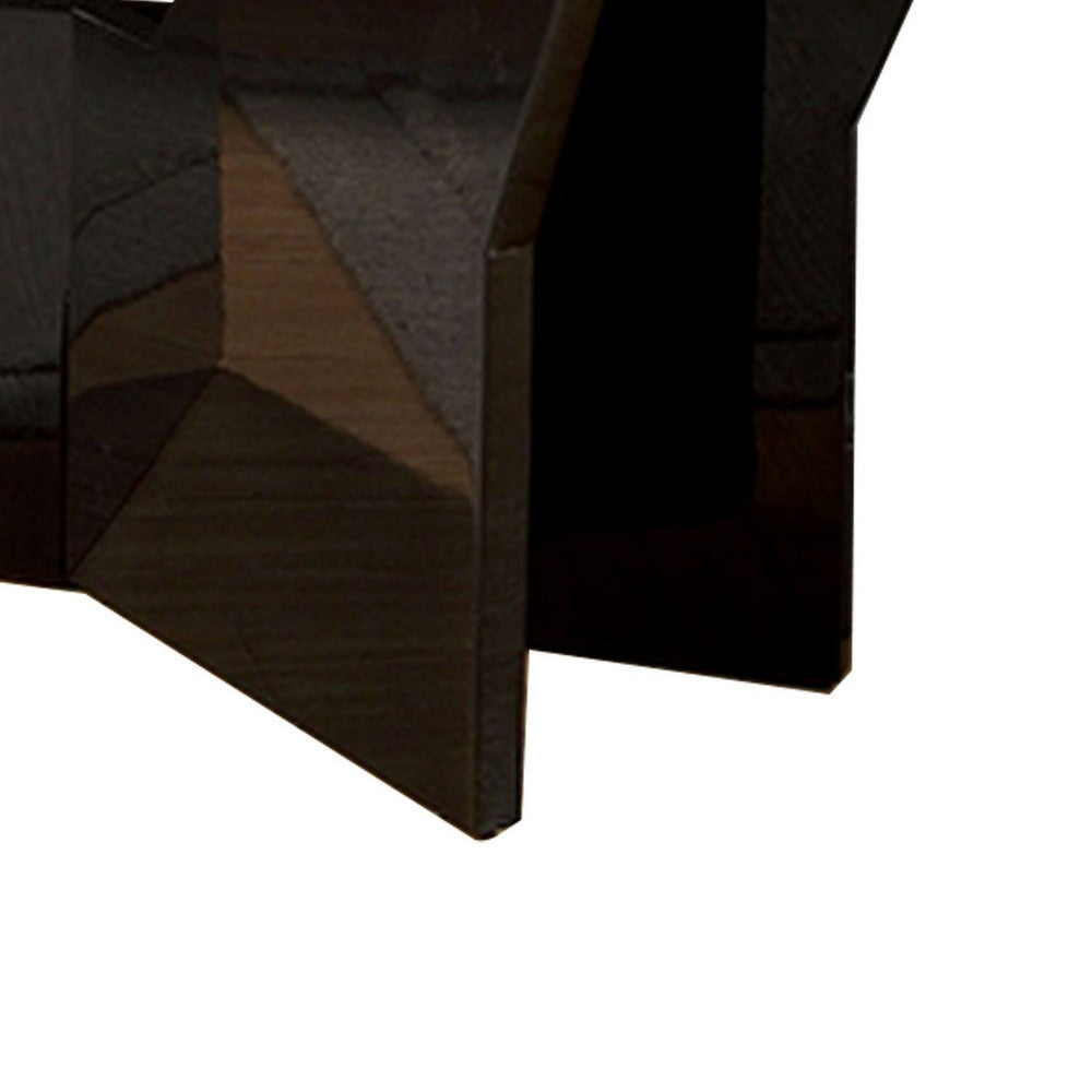 Enhance your entryway and decorate any lounge or living room with this stunning and deeply unique black sofa console table. Set with a rectangular surface featuring a sleek tempered black frosted glass insert, this piece is bolstered by a stunning, distinctive geometrically designed base that captures attention from every angle. Check out our Pera collection for matching items.