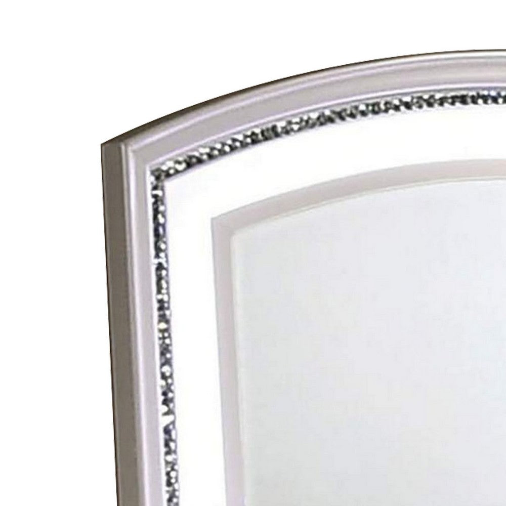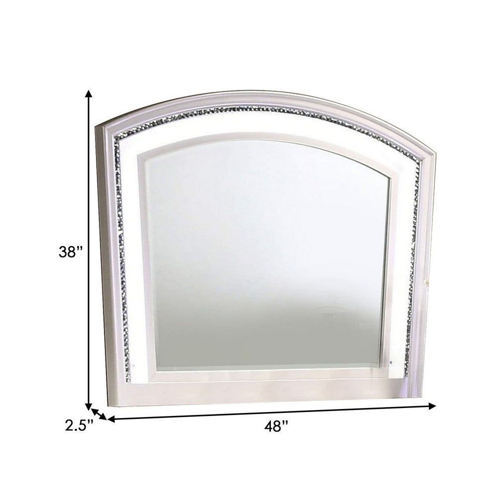 Create an illusion of space with the addition of this wall mirror, featuring a durable wooden frame with an arched top in a bright white finish whereas the crystal like accents makes it suitable for contemporary decor setting. It comes with the ready to hang pre installed mounting hardware.
