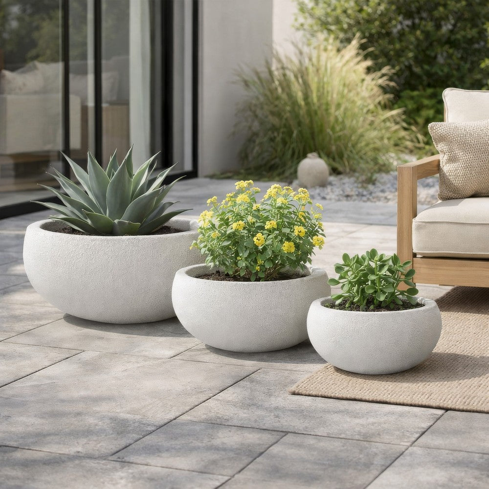 Keyan Accent Planter Set of 3, White Resin, Modern Smooth Bowl Shape -BM331075