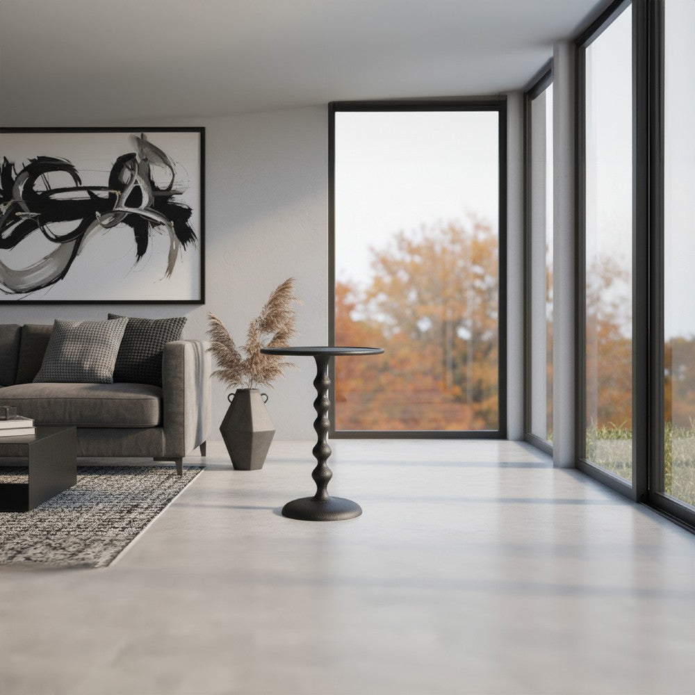 Shae 22 Inch Round Side End Table, Matte Black Aluminum Cast with Hammered Texture, Turned Padestal Post - UPT-310005
