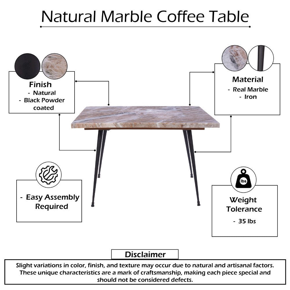 Bring a refined touch of craftsmanship and contemporary style to your living space with this coffee table from our premier Taro collection. This elegant piece features a natural taupe brown marble stone top with beautiful organic veining, set atop slender black powder-coated iron legs. The rich blend of stone and metal creates an organic and sophisticated contrast that enhances both modern and transitional interiors. Handmade with precision, it is designed for everyday function and timeless appeal. The smooth square marble surface provides an ideal platform for décor, coffee trays, or reading materials, while the lightweight iron frame ensures durability and easy mobility. Check out our Taro collection for more.