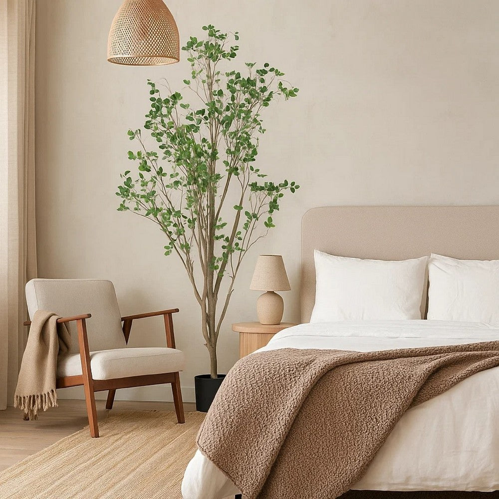 Refresh your space with the Deso artificial milan leaf bonsai, standing tall at 71 inches. Showcasing rich green oval leaves in clusters on wisping branches with realistic bark, it’s pre-potted in a white textured pot for easy styling. A low-maintenance accent perfect for modern homes, offices, or commercial spaces. Explore more in our Deso collection.