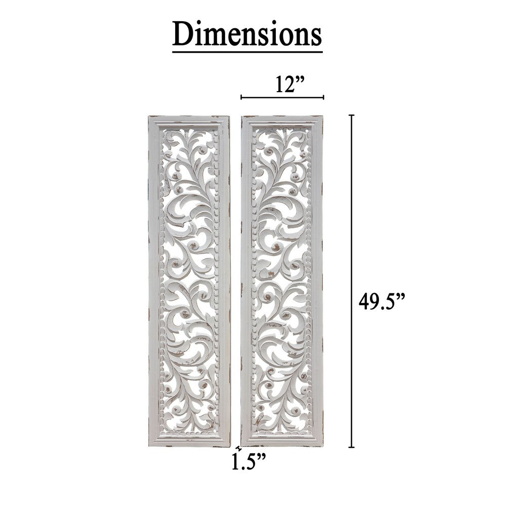 Ozy Carved Wall Art Panel Set of 2, Handcrafted Distressed White Mango Wood, 50 Inch Tall - UPT-330432