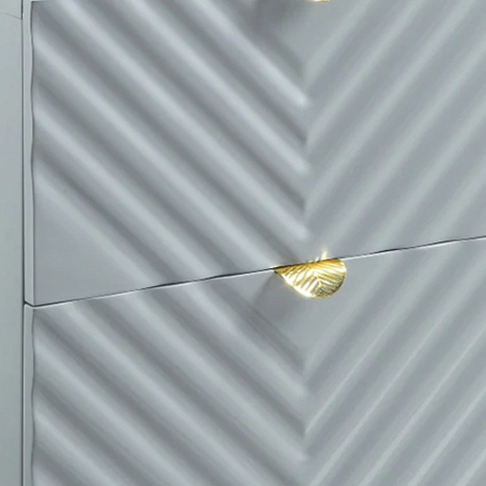 Sleek and classy, this nightstand makes a striking addition to your bedroom or guest room. Made of sturdy MDF, it features a bold wavy design, a smooth gray finish, glimmering polished gold finished metal handles and two drawers to hold all your daily essentials close at hand. Check out our Tyra collection for matching items.