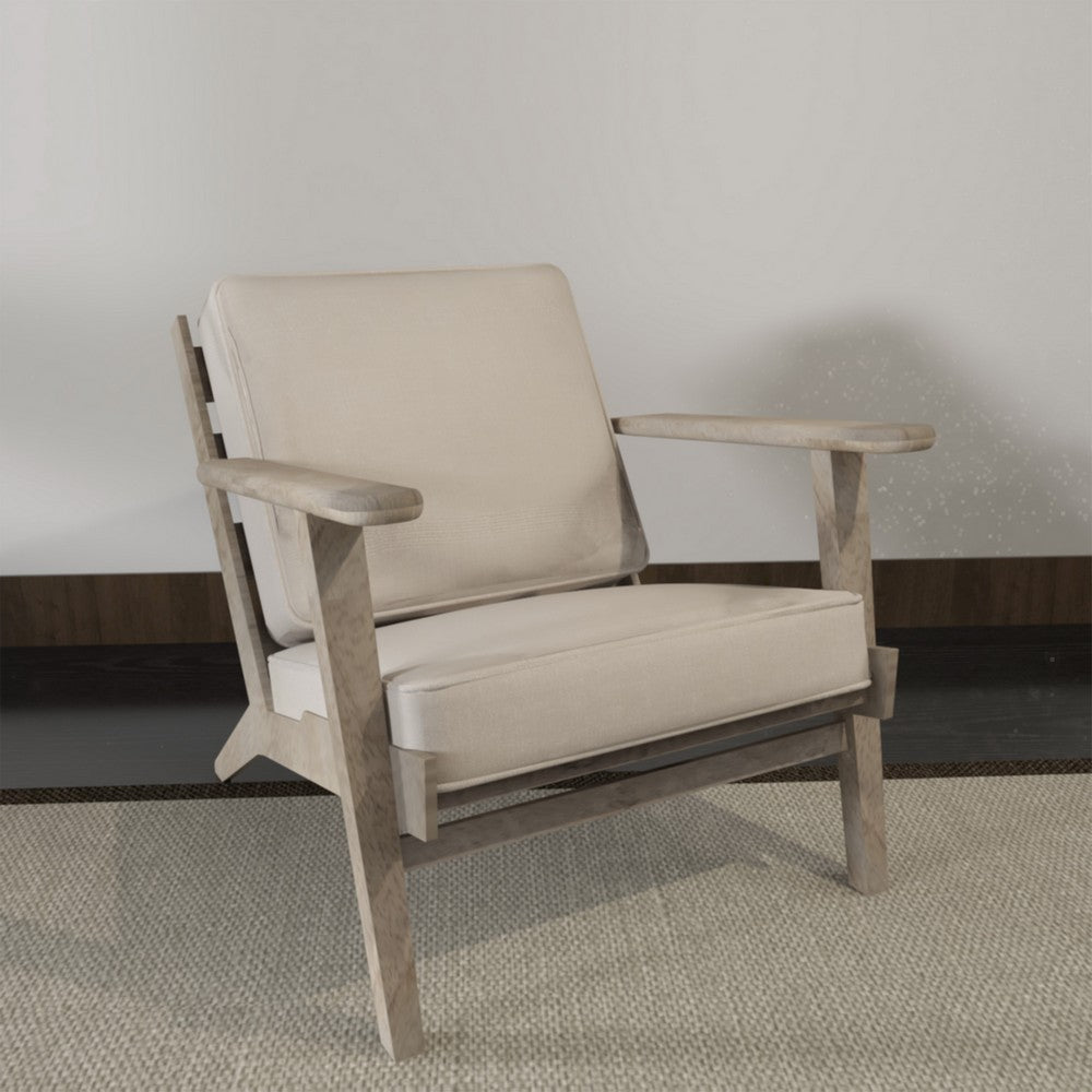 Amber Accent Chair, Handcrafted Washed Ash Gray Mango Wood, Beige Fabric Cushions, Angled Legs - UPT-315764