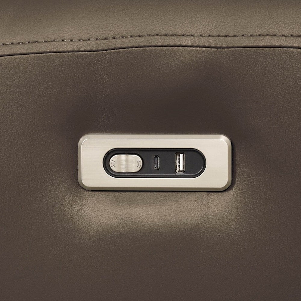 Sily Power Recliner Chair, Light Brown Faux Leather, Contoured Arms - BM339215