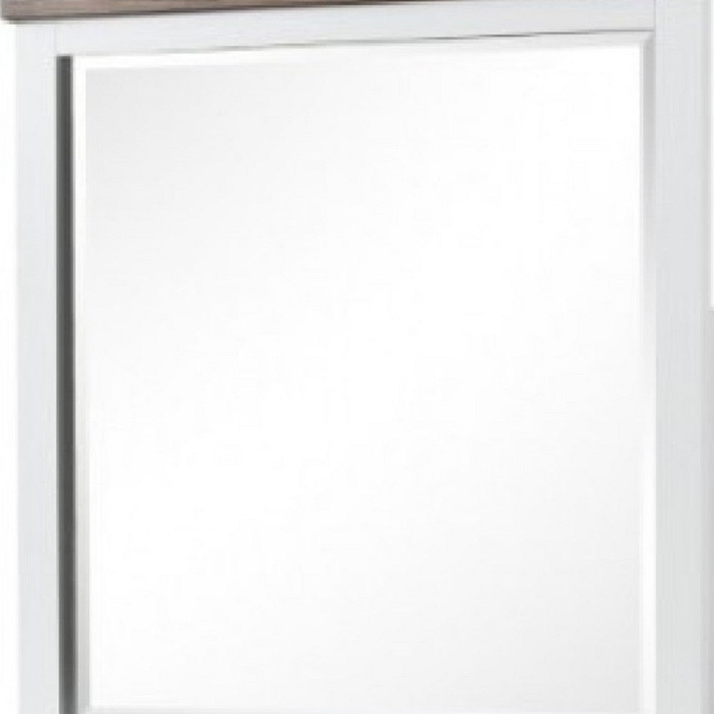 Tela Dresser Mirror, White Pinewood Frame, Dark Brown Top, 36 Inch - BM339306