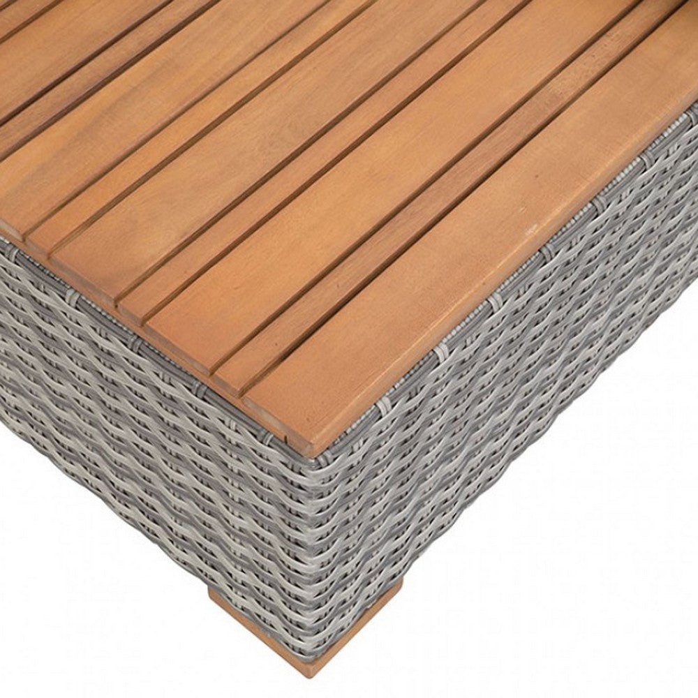 Relax in adaptable comfort with the Timy reclining chaise lounge set, crafted from gray polyethylene wicker over a steel frame. It transforms from loveseat to lounger or daybed with a five way adjustable backrest, includes foldable teak side tables, and features a hidden storage bench that doubles as a coffee table and tucks neatly underneath. Explore more in our Timy collection.