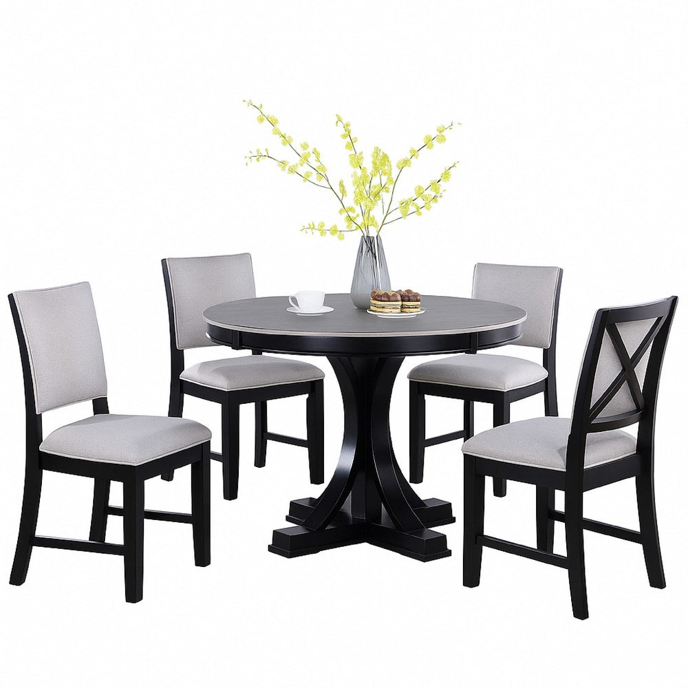 Yuru Dining Table, 44 Inch, Round Light Gray Top, Modern Black Wood - BM340189